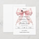 Verkünden Sie Ihren Meilenstein mit diesem Coquette-Abschluss-Save-the-Date. Das Design zeigt eine üppige rosa Schleife, verziert mit zarten Perlensträngen und einem klassischen Doktorhut-Symbol. Perfekt für die stylische Abiturientin, die ihr Porträt mit Familie und Freunden teilen möchte.