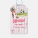 Rosa Schleife Streifen Sport Fußball Kickin Valentinstag-Etikett, Kickin Goal Valentinstag-Gunst-Etiketten, Bearbeitbare Sport-Themen Valentinstag-Etiketten