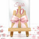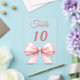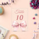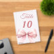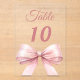 Personalisieren Sie Ihre Tischnummern einzeln. Ein klarer Hintergrund, verziert mit einer großen rosa Schleife.