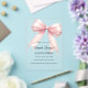 Ein klarer, transparenter Hintergrund, verziert mit einer großen rosa Schleife mit Perlen. Personalisieren und fügen Sie einen Namen und Party-Details hinzu.