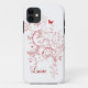 Ein empfindlicher Blumenstrudel im Rosa mit den rosa und roten Schmetterlingen auf einem weißen Hintergrund macht einen hübschen Fall. Addieren Sie Ihren eigenen Namen leicht