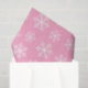 Ein Muster weißer Schneeflocken auf einem rosa Hintergrund.