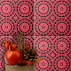 Diese Keramik-Kachel weist vier ähnliche kreisförmige Muster auf, die jeweils aus konzentrischen Kreisen bestehen, die mit komplexen geometrischen Mustern gefüllt sind. Um Kontrast zu schaffen, kombiniert das Design mehrere Rosa- und Rottöne, die durch schwarze Linien hervorgehoben werden. Die Motive werden durch ein weiteres kompliziertes geometrisches Muster ergänzt, das aufgrund der Anordnung der Formen und des Farbverlaufs einen optischen Täuschungseffekt erzeugt. Das Gesamtbild der Kachel zeugt von ethnischer oder traditioneller Anziehungskraft, ähnlich wie bei marokkanischen oder portugiesischen Keramiken. Diese Kachel wäre eine großartige Ergänzung zu jedem Zimmer, die Wärme und Charakter mit ihren brillanten Farben und faszinierendem Design.