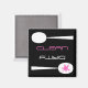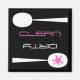 Ein sauberer - schmutziger Magnet mit modernem Stil, für den Geschirrspüler. Dieser Magnet ist schwarz mit einer modernen Grafik in hellrosa und weiß. Das ist ein stilvolles, einfaches Design eines schmutzigen Löffels und eines sauberen Löffels mit den Worten, sauber und schmutzig.