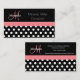Rosa Schwarz-weiße Polka Dot Monogramm Visitenkarte