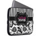 Diese personalisierte Schwarzweiss-Blumendamastlaptophülse hat die Textkästen, damit Sie mit Ihrem eigenen Namen, Initialen, Handelsnamen oder anderem Text besonders anfertigen. Wenn Sie irgendeine besonders anfertigende Hilfe benötigen, emailen Sie bitte niteowlstudio@gmail.com.
