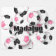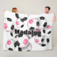 Dieser Fun-Fußball-Fleecedecke kann mit dem Namen des Athleten personalisiert werden, auf dem ein Haufen übergroßer rosa, schwarz-weißer Fußballbälle - von katz_d_zynes