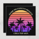 Coole, rosa und schwarze Palmen laden zu einem Besuch auf einer tropischen Insel ein. Die Palmen vor einem hübsch rosa Sonnenuntergang am Strand sind wunderschön. Perfekt angepasste Einladungen für Ihre Kreuzfahrt oder Sommerreise zu einem Badeort vor der Küste.