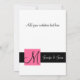 Elegante Hochzeitseinladungen (5 x 7 Zoll) mit Schwarz-Weiß-Vintagen Damask-Muster und Monogramm-Initial mit rosa Akzent-Farbe. Eine perfekte Art, Ihre Gäste zu Ihrer Hochzeit einzuladen. Zeitgenössisches Design mit Vintagem Damast-Muster mit einem Design, das es Ihnen ermöglicht, mit Ihrem Monogramm Initial- und Ihren Namen und Hochzeitseinladungstext zu personalisieren. Benötigen Sie Hilfe bei Ihrem Design oder Ihrer Hochzeitseinladung, Kontakt-Shop oder luxuryweddinginvitations@gmail.com. Layout Design von Elke Clarke ©2009. lizenzierte Grafiken. Wählen Sie auch aus einer Vielzahl von Schriftart und schönen Papieren, um Ihre Hochzeit Einladungen FABULOUS!