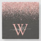 Moderner Untersetzer in schwarz-rosa Glitzer, elegant mit dem Skriptmonogramm, Vorname und Initial dekoriert.
