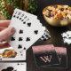 Moderne Spielkarten in Schwarz und Rosa Glitzer, elegant mit dem Skriptmonogramm, Vorname und Initial dekoriert.