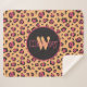 Rosa schwarzer Leopard Print Monogram Sherpadecke