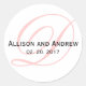 Einfache, elegante, rosa und weiße Script Monogram Gastgeschenk Hochzeit Sticker oder Save the Date Umschlag Aufkleber. Von Elke Clarke©2009. Passen Sie Ihren Familiennamen an, die Namen der Braut und des Bräutigams sowie das Hochzeitstermin. Verwenden Sie zum Siegel Ihrer Hochzeitseinladung Umschläge oder fügen Sie zu Ihren Gastgeschenke Hochzeiten. Benutzen Sie das "Anpassen"-Menü, um den Abstand zu ändern, wenn Sie den Buchstaben ändern.