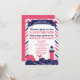 Diese niedliche Einladung hat viele Spaßelemente zu ihr, beginnend mit der Zickzack Grenze in den Schatten des Rosas, des Marineblaus und des Graus. Eine blaue Ankerfahne liest Anker weg! Eine kleine Dame ist auf ihrer Weise! Ein Rosamädchenwal schwimmt das Ozeanwasser, während ein Leuchtturm im Abstand sitzt. Personifizieren Sie diese Einladung mit den Details Ihrer SeeBabyparty oder besprühen Sie. Die Rückseite hat viel des Raumes zu Registerinformation und anderen Details.