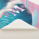 Abstrakte Ozeanwellen in einer sanften, sommerlichen Palette. Dieses Design ist ideal, um jedem Zimmer eine Touch des Strandes hinzuzufügen. Die blauen Farbtöne erinnern an die Stille des Ozeans, während das Rosa einen farbenfrohen Pop verleiht.