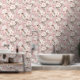 Rosa Rose Blumenmuster-Shabby Chic-Tapeten mit einem pastellrosa Rosa-Rosenmuster mit grünen Blätter auf einem rosa Hintergrund. Ideal für Wohngestaltung, Bäder, Wandakzente und Pflegebehandlungen, Büroeinrichtung und Party. Erstellt von Evco Studio www.zazzle.com/store/evcostudio