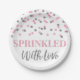 Sprinkled mit Liebe Baby Sprinkle Teller in hellrosa und silber Konfetti Muster.
