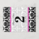 Rosa Silber- und Schwarz-Damast-Tischnummern Postkarte