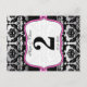 Rosa Silber- und Schwarz-Damast-Tischnummern Postkarte