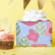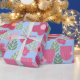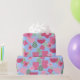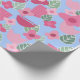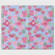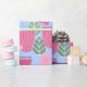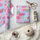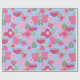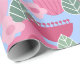 Dieses Verpackungspapier hat ein skandinavisches Design von Blume und Blätter in verschiedenen Farbtönen von Rosa und Grün auf einem Feld von Blau.