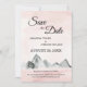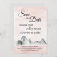 Diese rosa Sonnenaufgangshochzeit rettet das Datum bringt eine klassische und einzigartige, aber einfache und lässige Touch zu Ihrer Hochzeit. Sonnenaufgang und Sonnenuntergang in Rosa, Lila, Pfirsich, Rose, Korallen und staubigen Rose, geküsst mit sternengoldenem Glitzer rund um den gestylten Kalligrafietext, verleihen den grauen Gebirgen, die in Aquarellen gestrichen sind, eine friedliche und minimale Natur für eine Hochzeit zum Thema Berge.