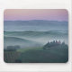 Mousepad mit einem nebeligen Sonnenaufgang mit einem rosa Himmel und einem Nebel zwischen den toskanischen Hügeln über agriturismo podere ILBelvederebauernhaus im Valdorcia (Orcia Tal) zwischen Pienza und San Quirico in Toskana, Italien.