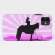 Buntes rosa Sonnenuntergangcowgirl auf Pferd auf iPhone Hüllen. Vervollkommnen Sie für Pferdeliebhaber und -reiter. ADDIEREN Sie Ihren eigenen Text, um besonders anzufertigen. Klicken fertigt Knopf besonders an.