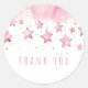 Rosa Sterne danken Ihnen für einen lustigen Aufkleber. Die Sterne hängen von hellrosa, träumlich flauschigen Wolken.