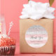 Rundaufkleber für Brautparty Gefallen mit Imitaten silber Glitzer und rosa Streifen Hintergrund.