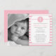 Einfaches, modernes Foto in Rosa und Weiß Taufe Design für Ihr kleines Mädchen. Der Hintergrund ist in Rosa und Weiß gestreift, das Kreuz ist weiß und grau und in Rosa eingekreist, und die rosa gestrichene Grenze ist mit zwei rosa Streifen beiderseits verbunden. Originelles Design von Holiday Hearts Designs (Rechte vorbehalten).
