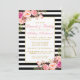 Aquarellfarben Rosa Rosa Rosa, Schwarz und Weiß Streifen Brunch & Bubbly Brautparty Einladungskarte