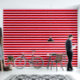 Rote und rosa Streifen Linien mit dünnen schwarz-weißen Linien zwischen geometrischen Nahtlosen Oberflächenmustern