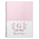 Mit diesem hübschen Spiralnotebook mit zarter rosa und pfirsichfarbener Blume, einem rosa pinstripfarbenen Muster, einem trendigen, skallopierten Rand, niedlichen Vögeln und einem anpassbaren Monogramm fügen Sie Ihrer täglichen Arbeit eine feminine Touch hinzu. Ändern Sie den ursprünglichen Namen und den Namen, um ein einmaliges Geschenk für Familie, Freunde, Mitarbeiter oder Studenten zu erstellen. Egal, ob Sie mit diesem Notizbuch Notizen hinzufügen, Hausaufgaben verfolgen, Skizzen oder Zeitschriften erstellen, dieses Notebook ergänzt Ihren Arbeitsplatz oder Schultasche.