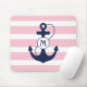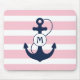 Rosa Streifen mit Seeanker und Monogramm Mousepad