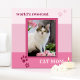Eine super niedliche Kachel mit einem Foto von Ihrem Lieblingskätzchen, gerahmt durch ein rosa gestreiftes Design mit Katzenpfoten und eigenen Texten.