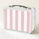 Rosa Streifen, weiße Streifen, gestreiftes Muster Metall Brotdose