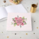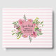 Hübsche Babydusche oder Brautparty-Gästebuch mit rosa und weiß gestreiftem Hintergrund. Die Blumendekoration aus dem Aquarellpinken, auf der Vorderseite des Buches, hat eine rosa Scheibe mit eigenem Text. Personalisieren Sie die Textfelder für Ihren besonderen Tag.