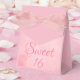 Ein feminin rosa Gastgeschenk mit dem Text "Sweet 16" Set in elegantem rosa Schriftart, um diesen Meilenstein Geburtstag zu feiern.