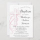 Eine hübsche Taufe in Weiß und Rosa mit einem weißen Kreuz, umgeben von rosa Wirbel.