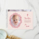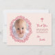 Rosa Tauf-Mädchen-Foto & rote Blumenkranz-Schriftz Dankeskarte