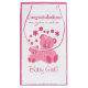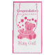 Entzückender rosa Teddybär betrifft Babyglückwunsch-Geschenktasche.
