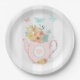 Rosa Teekanne mit Blume und Schmetterlingen Pappteller