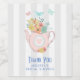 Rosa Teekanne mit Blume und Schmetterlingen Weinetikett