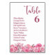 Elegante Rosa Rosa Blumen Hochzeit Tischnummer mit Gastnamen.