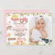 Pink Tractor Arch Farm Tiere 1. Geburtstag Einladung Niedliche Mädchen's Foto Farm zum ersten Geburtstag Einladung mit einem niedlich rosa Traktor, Heu, Nutztiere, Ballons, Blumenarrangements und ein Zeichen. Das Foto deines kleinen Mädchens erscheint in einem Bogenrahmen. Dieses oink baa moo Mädchen's Geburtstag Einladung Design kann für jedes Alter verwendet werden.
