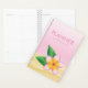 Dieser tropische Themenplaner zeigt Desteis Illustration einer schönen rosa Frangipani Blume mit zwei grünen Blätter. Der Hintergrund hat ein Strandmotiv mit einer Sandstruktur, während die Hintergrundfarbe rosa ist. Es gibt personalisierbare Textbereiche für den Titel des Planers und für einen Namen auf der Vorderseite.