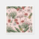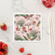 Diese eleganten tropischen Flamingo-Servietten sind mit einem Blumenmuster aus handgezeichnet rosa Flamingos, Hibiskus- und Jasmin-Blume, Ananas, Bananen-Blätter und Tropengetränken gestaltet.