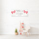 Moderne, elegante, rosa Tulpen, florale Aquarell Sommer Hochzeit Begrüßungsbanner. Rustikales, rosa Frühlingsblütenbanner. Ideal für Neugeborene. Man kann es mit Namen und Datum von Braut und Bräutigam personalisieren.