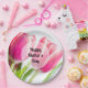 Rosa Tulips mit grünen Blätter Foto Muttertag Pappteller