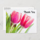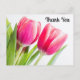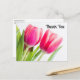 Vielen Dank Postcard mit einem wunderschönen Frühlingsfoto mit 2 rosa Tulpen und hellgrünen Blätter.